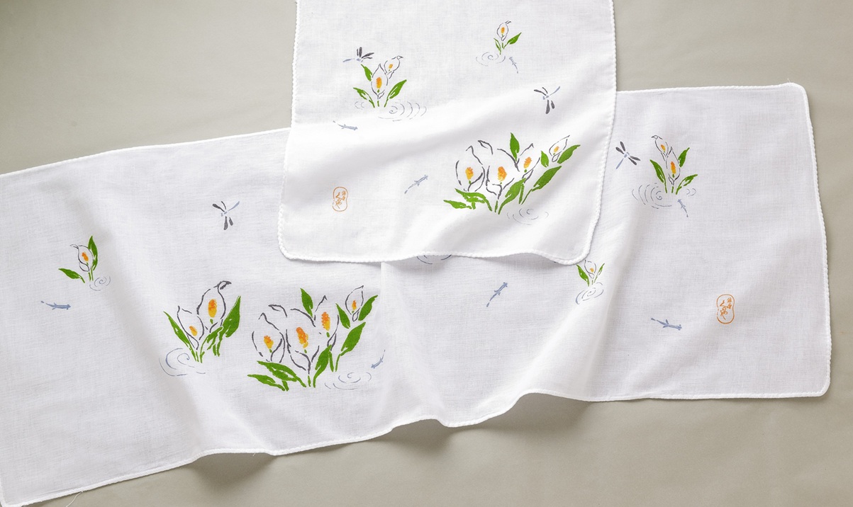 今シーズンは「水芭蕉にトンボ」を加えた全5柄を数量限定でご用意いたしました。